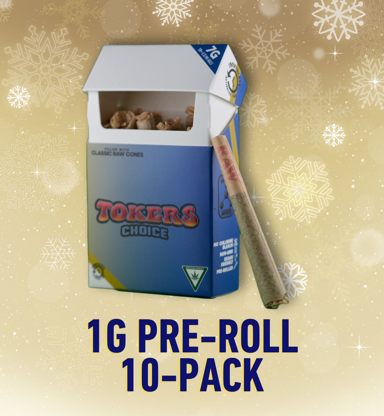 Toker’s Choice prerolls are the coolest joints in town, catering to beginners, connoisseurs, and terpene chasers alike. Available in 7 gram, 10 Packs with a variety of strains for every consumer. Crafted from top-grade machine-ground cannabis and infused with natural terpenes, our prerolls guarantee consistent flavor and burn. Packed in genuine RAW cones untouched by saliva, they ensure purity and quality. The eye- catching 10-pack packaging and innovative Integra 2-way humidity pack ensure maximum freshness and our commitment to quality.